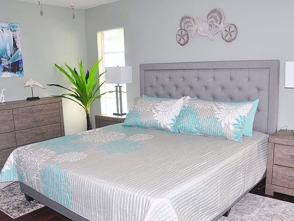 Welcome to your oasis in Clearwater! This spacious and light-filled 3-bedroom, 2-bath home combines modern comfort with tropical charm. Surrounded by lush greenery, a fully fenced yard with brick-paved patio creates the perfect setting for outdoor relaxation. Two gazebos the perfect spot for relaxing evenings outdoors. A deluxe 7-person jetted hot tub is also available, offering a touch of luxury and relaxation.
