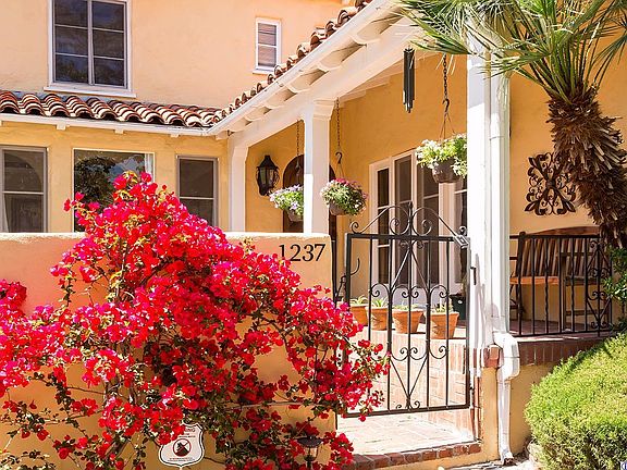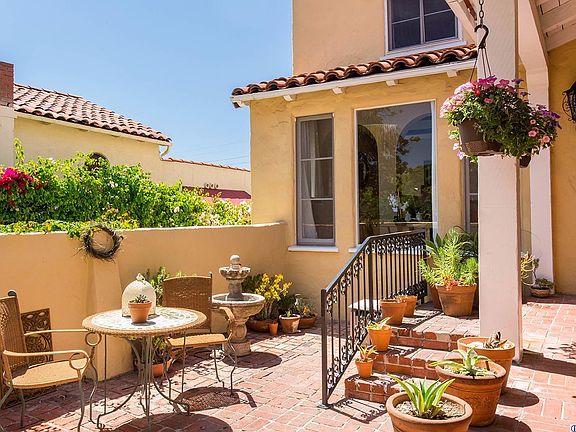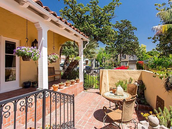 Adjacent to the historic District of Rossmoyne, this vintage 2 story Spanish offers a prestigious location and a charming home. The gated courtyard is ideal for casual dining or relaxing. Open the attractive front door to a classic magnesite floored entry and a step down living room.This exceptional room has a Trestle beam ceiling, an authentic fireplace and a large picture window. Plus original French doors lead outside to the delightful courtyard.The spacious formal dining room is open to the kitchen and to a charming arched alcove that might be your reading space, play area for the kids or an office. The light filled kitchen has a breakfast area overlooking the backyard, tile counters and new flooring. A bedroom and bath downstairs is ideal for guests.Upstairs are 3 bedrooms including a roomy master. Many windows and views of downtown Glendale make the upstairs a great retreat.Step out to the grass yard, patio and barbeque. Enjoy the great style and walkability of this property.