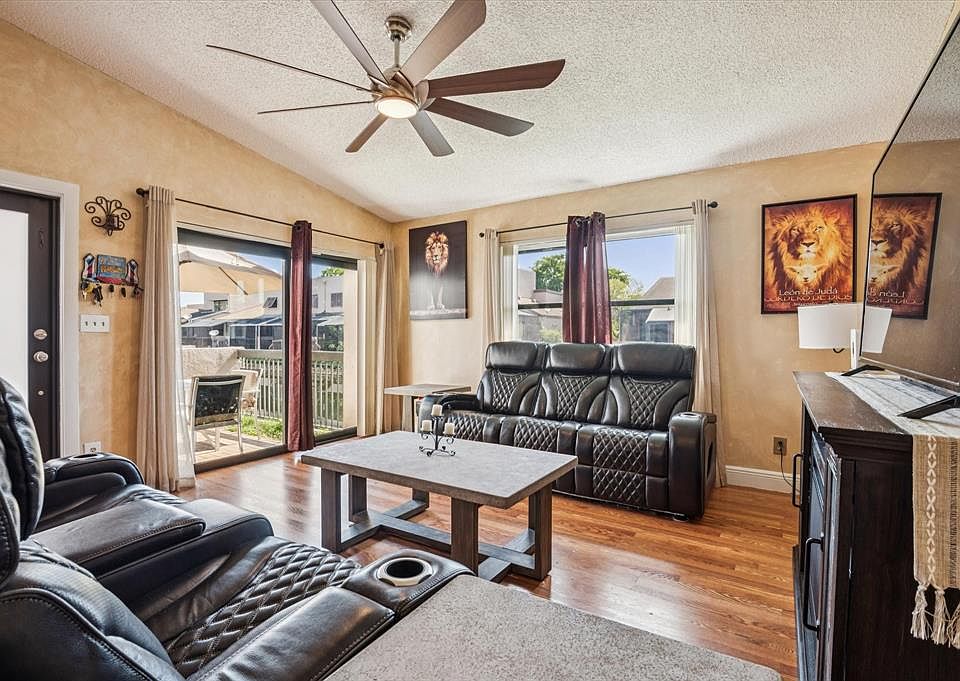 Beautifully updated 2 bed, 2 bath end-unit townhome located on the canal in a guard-gated community. This home offers a convenient layout with one bedroom and full bath on the ground floor, plus a renovated kitchen, modernized bathrooms and water softener system. The spacious interior includes a full-size washer and dryer, and peace of mind knowing the polybutylene pipes have been replaced, and complete hurricane windows & doors. Enjoy the convenience of two assigned parking spaces directly in front of the unit, with guest parking just across the street.
