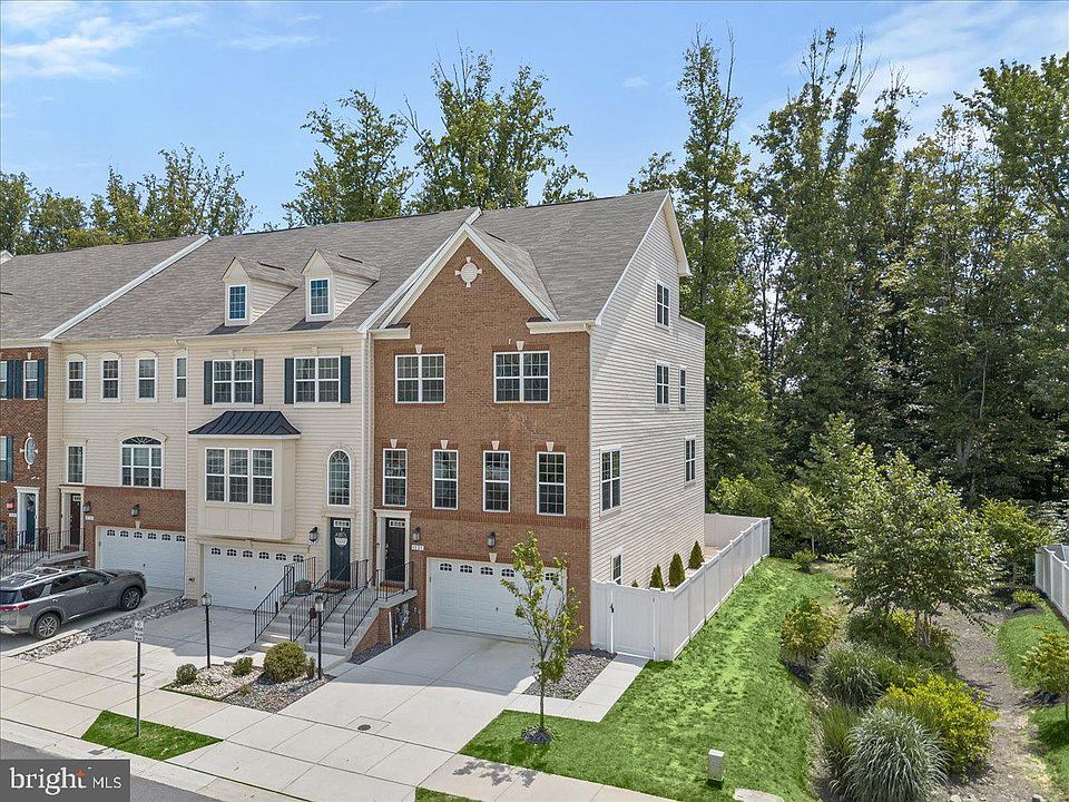 Nestled against a picturesque backdrop of wooded landscape, this luxury four-level, end-unit townhome in Summerfield Village offers a serene retreat within easy reach of urban conveniences. A short stroll down the street is a community pathway to Waugh Chapel Towne Centre, a vibrant shopping district where you can explore boutiques, cafes, an enticing array of restaurants for every occasion and palate, sports equipment and apparel shops, or perhaps take along your lawn chair or blanket to attend the concert series. Stepping inside, you’ll find an exceptionally designed space that exudes all the features of a model home. Every corner showcases thoughtful upgrades and finishes added by its current owners. A two-story foyer welcomes you, and the open floor plan unfolds into a layout offering distinct areas for dining and living that surround the gourmet kitchen, with its sleek quartz countertops, glazed cabinetry, top-of-the-line Electrolux appliances, and an enormous center island that beckons family members to gather around. Custom-designed closets by the owners maximize storage and organization. Adjacent to the kitchen is a stylish wine cabinet and coffee bar, crafted to enhance the experience of brewing and savoring coffee and tea. The wine cabinet, with its sleek design and ample storage, makes it perfect for displaying your finest collection. Additional side windows offered only with the end units create an abundance of natural light, along with transom windows above the sliding glass doors leading to a composite deck backing to trees. Upstairs, the bedrooms continue the theme of luxury and relaxation, with spacious layouts and additional custom-designed closets. The expanded owner’s suite boasts tray ceilings, enormous walk-in closet and a spa-like bath boasting premium tile work in the expansive shower, along with dual shower heads. There’s also a convenient laundry closet on this level, housing top of the line Samsung units. As you venture to the topmost floor, you’ll find a versatile/flexible space, perhaps an office or gaming area, along with a half bath, and private deck offering panoramic views from an elevated vantage point. The ground-level suite provides an opportunity for accommodating extended family or guests, with a bedroom and additional full bath, additional recreation/family room area, access to the backyard patio, and a fully fenced yard. The interior of the garage has finished walls and storage shelving. The community offers a playground, walking trails, clubhouse that can be rented out for events, and dog park with exercise equipment.