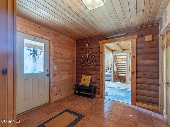 Welcome to 1237 Peaceable Street in the Town of Charlton a beautifully crafted log home on 3.14 serene acres within the Burnt Hills-Ballston Lake School District. Built by North Country Log Homes. This residence blends rustic charm with thoughtful updates. The main living area features hardwood floors with custom inlays, an updated kitchen with newer appliances, & a cozy gas fireplace A walkout basement offers future expansion potential or convenient storage. Enjoy the versatility of 3 bedrooms, plus a loft 2 full baths, mudroom with a ½ bath and pantry plumbed for washer/dryer. The oversized attached garage provides space for vehicles and tools. This private property is the perfect mix of nature and comfort—ready for you to move in and make it your own!