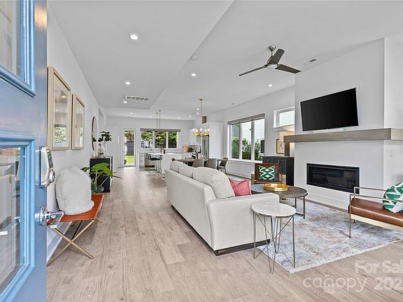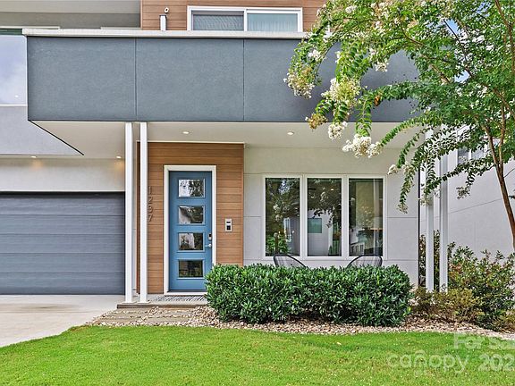 This home is that elusive gem everyone is looking for. With its intelligent design and high-end finishes, this home offers the rare opportunity to own something modern and cutting edge in an established, tree-lined part of the city. With its almost 3,000 square feet of living space and its four bedrooms and 2.5 baths, every convenience has been considered, from a tankless water heater to Italian cabinetry to its solar panels and enviably low carbon footprint, this two-story home in Charlotte’s premier solar community showcases a large corner lot with a privacy fence. Exterior details include fiber-cement and stucco finish, covered front porch, rear porch, private balcony, patio, and fenced backyard ideal for outdoor living. The open layout inside includes a spacious great room with fireplace, a generous dining area, and an impressive kitchen featuring an oversized island with breakfast bar, pantry, and stainless appliances. Make your way upstairs to the serene primary suite with its over-sized frameless glass shower, dual vanity, and walk-in closet. Three additional bedrooms, versatile bed/bonus, and a full bath provide flexible space for guests, crafting, a movie night, or playroom. Off the bonus space is a large balcony, perfect for morning coffee or evening sunsets. The outdoor space is perfect for relaxation and entertaining, with a large lawn for play, and a patio for dining/entertaining. Completing the home is a large, finished two-car garage featuring additional storage shelving. Desirable location near SouthPark, Cotswold, and Uptown, along with a lower level office space and full laundry room with sink make this a memorable home, just in time for the holidays!