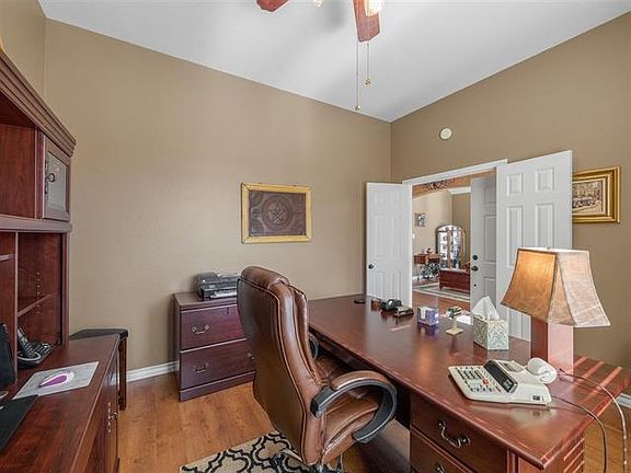 Multiple offers received. Please submit highest and best by Sat. May 15, 7pm. Well maintained one story with today's desired open concept kitchen-living room flow. Arched grand entry leads to open family room & kitchen with breakfast bar. Premium laminate wood flooring and mantle fireplace add a nice warm feel. Kitchen has lots of cabinet and counter space and a dining nook with window filled views of backyard. Spacious primary bedroom with en-suite bath featuring an oversized tile surround walk in shower and walk in closet. Lot of recent improvements in the past several years; new roof, new windows, 14 seer HVAC, patio cover, storage shed, and more. Added bonus: refrigerator conveys to buyer!