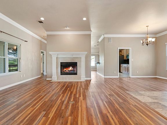 Cozy wood-burning fireplaceTimeless cabinetryShade treesWood flooringPrivate backyard oasisWraparound bar seatingBonus fenced-in yard