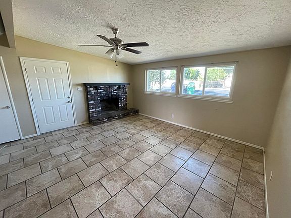 and inviting fireplace in the living room. Relax in your spacious backyard