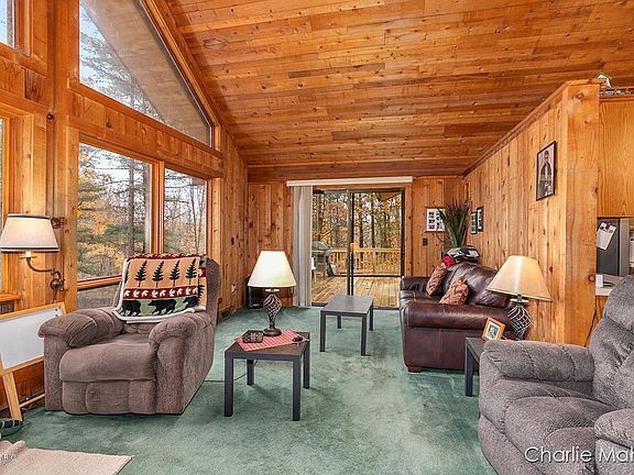 Beautiful Private Setting On 8+ Wooded Acres! 240 Feet of Private Frontage on the Flat River. Cedar Sided Ranch Home, Living Room With Beautiful Cathedral Ceiling And Gorgeous Fieldstone Fireplace With Gas Log. Family Room In Lower Level Walkout With Wood Stove. Enjoy Your 3 Season Room With Sliders to Large Wrap Around Deck With Great Views of the River. New Roof And New Deck! Hunter, Fisherman And Nature Lover's Paradise!