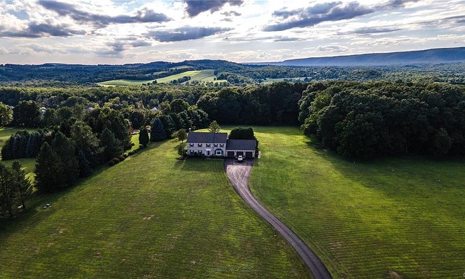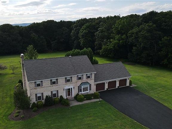 Amazing views from this 4 BR, 3.5 bath Center Hall Colonial situated on over 18 Ac,2 parcels in Act 319.Quality craftsmanship,well cared for w/many upgrades such as newer roof, newer well pump, newer furnace, C/A, newer hot water heater, 2-40 circuit breaker panels.From the tiled foyer,to left you'll find the large LR,on the right the DR w/HW floors & bay window.Down the center hall to the remodeled eat-in kitchen w/Corian counters, tile backsplash w/ tons of cabinets & counter space w/center island. All open to the Family RM w/brick woodburning FP leading to a covered patio w/stunning view of the mtns & wooded acres. Off the kitchen you'll find a laundry & half bath. 4 BR's upstairs includes master suite. Heated 3rd floor, currently a large rec room. Basement w/tons of storage & finishing possibilities w/8 ft ceilings, a full bath & sewer pump inside a finished closet,& flush pump area.Recently paved driveway,3 car garage with its own 20 Circuit Electric Panel and 60,000 BTU Gas Heat.