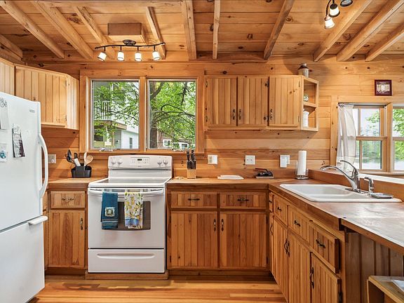 - Cathedral Ceiling(s), Dining Area, Kitchen Island, Kitchen/Dining, Natural Light, Natural Woodwork, Vaulted Ceiling(s)