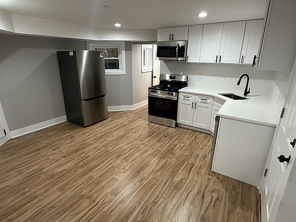 The only thing not brand new is the unit the building is in. "Garden" BASEMENT apartment in historic greystone. Step into the unit through your private entrance and find a brand new eat-in kitchen with stainless steel appliances including upgraded bottom freezer refrigerator. Undermount sink, quartz countertops, soft close drawers and doors. Kohler faucets, mirror and vanity. Both bedrooms have a ceiling fan. Bedroom sizes are 7.5x10.2 and 8.2x11. Living room 11x14. Central heat and a/c. Tenant pays gas and electric. Owner pays water garbage and recycling. Move in fee $500. Application fee $50 per person.