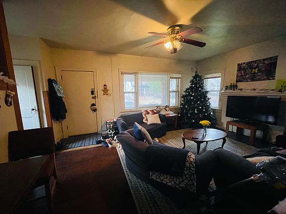 The house has 4 large bedrooms and an extra large finished room in the basement. Two full baths. Large kitchen with 2 Refrigerators and has a pantry space. Large front porch. Free on-site laundry and parking.