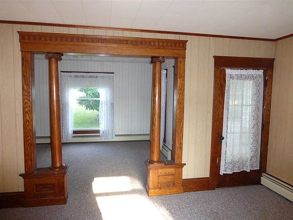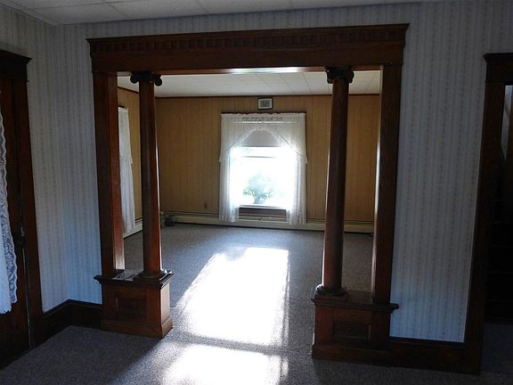 Nice country setting, property includes 5 acre parcel. Charming old farm house. Original wood trim throughout the house. Original wood trim throughout the house. Beautiful original cabinetry in the kitchen. 4 possibly 5 bedroom home with bonus room on upper level. First floor laundry and entry level master bedroom with huge convenient sliding glass door into the back yard. Attic space easily accessible and big enough to restore into another usable space. Updates over the last few years include vinyl siding, windows, roof, boiler, plumbing, & hot water heater. Home wired for generator. One huge 60x80 pole barn concrete and electric in great condition ready to store boats, cars, or even a motor home. Other outbuildings constst of a 4 car garage with workshop, truck shed with loft, chicken coop, barn, & garden shed. This home and land is for those who love their space and privacy.