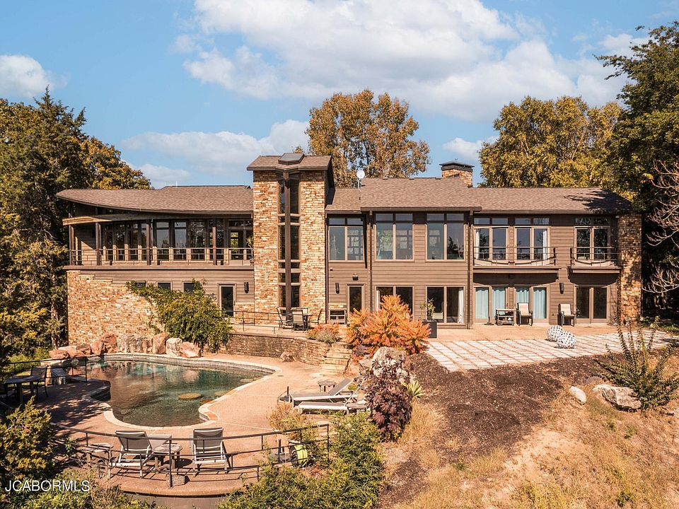 STUNNING amazing one-of-a-kind masterpiece located on the bluffs with acreage! This is a rare find and one you surely won't want to miss. With 5 bedrooms, 4 full and 2 half baths you'll love the privacy and space this home allows! Tons of windows allow for loads of natural light to fill this home and provide gorgeous views overlooking Missouri River and the State Capitol building. This special home is located within Jefferson City limits. Primary suite boasts huge walk-in master closet and gorgeous en-suite with custom shower. Children's bedroom wing consists of two bedrooms and HUGE jack-n-jill bath with two walk in custom showers, large jetted tub and dual vanity. With two laundry hookups/rooms down and one on main next to kitchen, chores are still a breeze in this expansive home! Enjoy the outdoor views from the main balconies or relax and entertain on the patio by the beautiful in-ground pool. With large family room/library, home office, bar room and so much more, there is no shortage in what this gorgeous home has to offer. Schedule a showing today and make this dream home your own!
