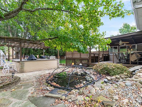 Awesome location for this 3 bedroom 2.5 bath colonial in Springwater Gardens Allotment in the top rated Lake Local School District. Great family neighborhood close to schools, Hartville Kitchens, flea market, hardware, and chocolate factory. Also walking distance to Clearwater Swim Park. Backyard is amazing on this one with an 18x14 covered deck, second open deck leading to hot tub, koi pond, large paver patio leading to an outdoor bar/kitchen with pergola. The outdoor kitchen includes a fridge, grill, and Green Egg included. Backyard is private and truly a must see. Storage shed included. Kitchen has been updated with granite counter tops and stainless steel appliances included. Back 20x14 family room features a gas fireplace, wet bar, slider to deck, and lots of windows overlooking the backyard and letting in lots of natural light. First floor also has 2 more living rooms plus a 1/2 bath. Master bedroom has full master bath. Down the hall features 2 more bedrooms plus a full bath with skylight. Full dry basement just waiting to be finished or great for storage. Well maintained by original owner with some updates include roof 14', furnace 15,' water softener 20', A/C 20', and updated 200 amp electric. This one is has so much to offer at this price and will make a great house to call HOME!