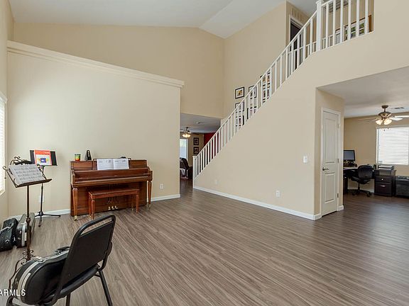 Come see this beautiful two story home in Rio Crossing that is nestled within a quiet, tranquil community and just a two minute walk to the neighborhood park. It is well kept and ready to move in. This 2470 sq ft home has a wonderful layout, with a great family room that opens to a kitchen with island, 3 upstairs bedrooms, with a huge master suite, with walk in closet and 2.5 baths, Exterior was freshly paint in 2020. Solar. Gorgeous backyard with brick pavers, excellent for entertaining, BBQ, sitting or just enjoying life.Enjoy easy access to the 101 and I-10 freeways with just a short drive to Wigwam Resort, Spring Training, Westgate Entertainment District, tons of shopping, dining, and sporting. This turn-key property wont stay on the market for long.