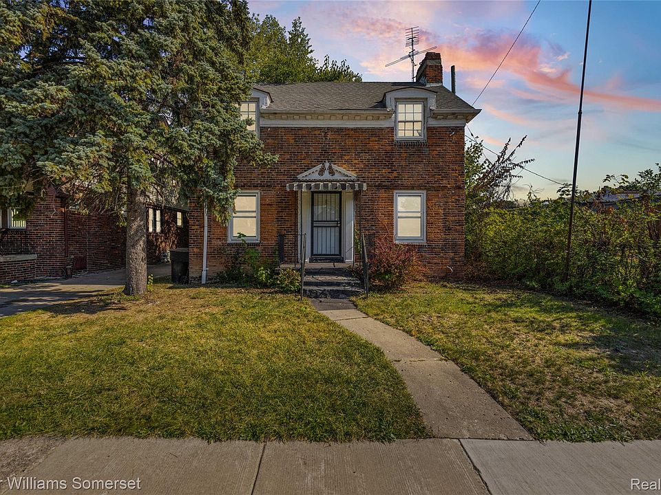 Welcome to this classic all-brick colonial filled with character and potential. This home offers 2 bedrooms with a flexible third room currently used as a dining area, easily convertible back into a bedroom to suit your needs. Enjoy the charm of an inviting living room featuring a cozy fireplace, arched doorways, and plenty of natural light. The kitchen offers updated cabinetry and a tiled backsplash, just awaiting your finishing touches to make it complete. With a little bit of work, this home could truly shine. Additional highlights include a 2-car detached garage, an unfinished basement for extra storage or future living space, and a spacious yard. Conveniently located near the expressway, Grosse Pointe, and just a short drive to downtown Detroit — perfect for anyone seeking a great location with room to grow. Bring your vision and make this East English Village gem your own!
