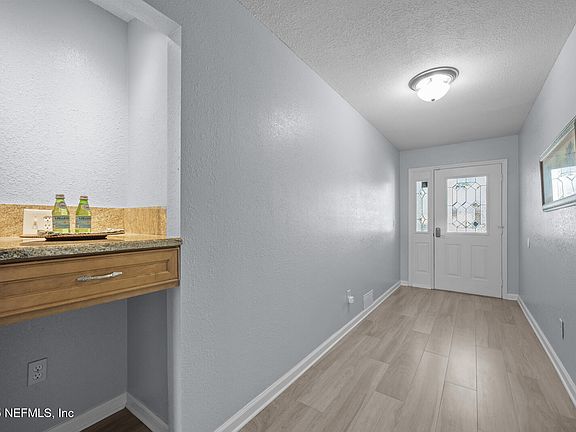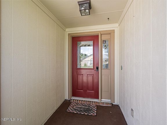 You will want to come check out this one! Lots of nice upgrades done by current owners. You will not find any carpet in this home, just upgraded tiled floors throughout! Home boasts loads of light, high ceilings & a layout without any wasted space! When you step into the foyer you will see a spot for a beverage cooler & cozy bar area, perfect for entertaining! Then welcome to the large living area opened to the dining & kitchen areas! Gas fireplace w/TV wall mount is ready to watch fall football! Both bathrooms have been updated with nice vanities, tiled shower surround, new toilets, plumbing fixtures. The kitchen also had some updates w/resurfaced countertops, newer stainless steel appliances, disposal & yes the kitchen island can stay! Back porch is screened w/newly painted floor & cozy hot tub w/mounted tv; making the space a great place to fully relax! Seller is leaving the washer/dryer & water softener system. Tankless gas water heater too! Enjoy annual affordable HOA fees. Hunters Ridge is situated between JTB and Beach Blvd with easy access to The Beaches, St Johns Town Center, Jacksonville International Airport, Downtown, Everbank Field, I-295 & I-95 to head wherever you want to go! Minutes from shopping, retail & dining as well as Publix & Sprouts! New medical center going in for local residents and zoned for A-rated schools.