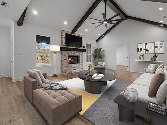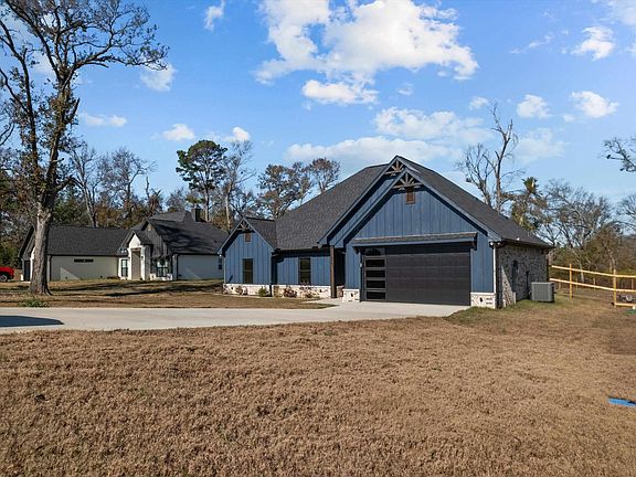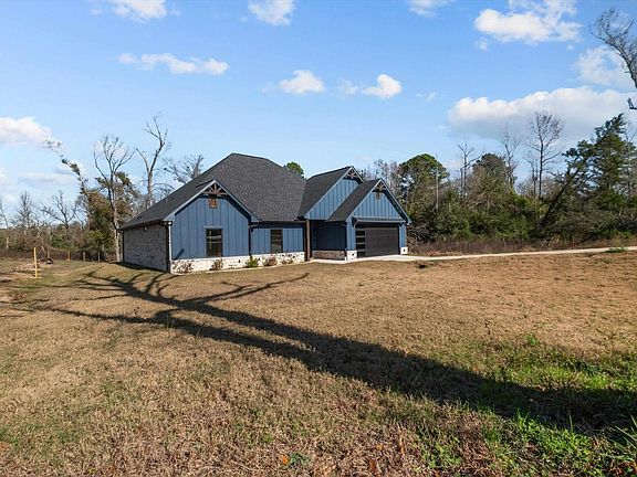 Welcome to 12376 County Road 46, Tyler, TX 75704—a meticulously crafted custom-built home offering 2,033 square feet of modern living on a spacious 0.5-acre privacy fenced lot just outside the city limits of Tyler. This 3-bedroom, 2-bathroom residence features an open floor plan with vaulted ceilings and stained beams, creating a warm and inviting atmosphere. The gourmet kitchen is designed for both style and functionality, boasting stainless steel appliances, custom cabinetry, quartz countertops, and a large island. The primary suite is a private retreat, showcasing a boxed ceiling with stained wood accents. The en suite bathroom offers a luxurious soaking tub, a walk-in tiled shower, and a generously sized walk-in closet. A split bedroom arrangement ensures privacy, with additional bedrooms thoughtfully placed apart from the primary suite. The living area centers around a cozy wood-burning fireplace, perfect for relaxing evenings. The home’s striking blue exterior is accented with natural stone, adding to its exceptional curb appeal. Built in 2023, this property combines modern amenities with thoughtful design, providing a serene lifestyle just minutes from Tyler's conveniences. Don’t miss the opportunity to make this stunning home yours—schedule a private showing today!