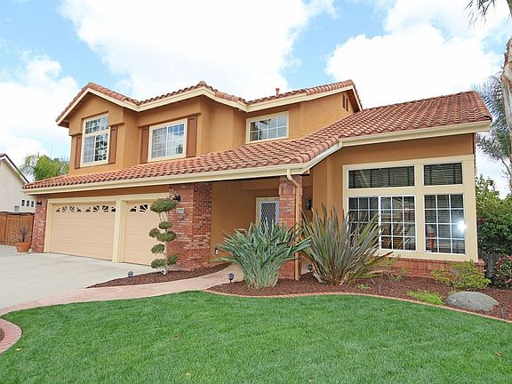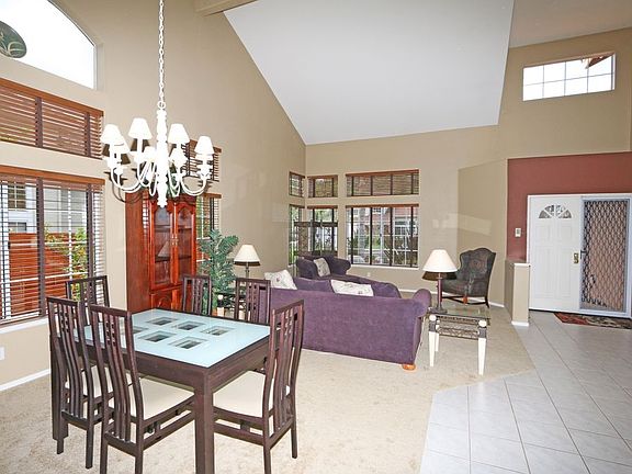 Rarely available 4 bed/2.5 bath home, with pool and spa at the end of a cul-de-sac. Eastern mountain views. Dedicated open space nearby Easy access to hiking and mountain biking trails. This Poway Estates, Plan 3 boasts an elegant formal living and dining area. Vaulted ceilings, dramatic architectural niches. Cooks kitchen with island and eat-in breakfast area. Comfortable family room with vaulted ceilings and fireplace. Master bedroom on main level. 3 car garage. Award winning PUSD.