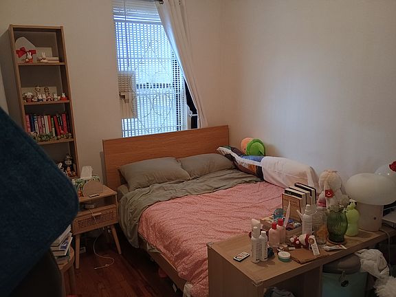 Full sized individual bedrooms each having two windows. Full sized bathroom with a complete tub and large vanity sink. Hardwood floors throughout the apartment, shared closet space in the living room. Full sized kitchen facing the living room.