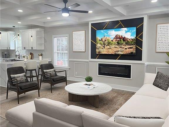 Fireplace in family roomFireplace in masterOpen floor conceptCustom wood designCustom ceilingWall cabinetsCustom tray ceiling