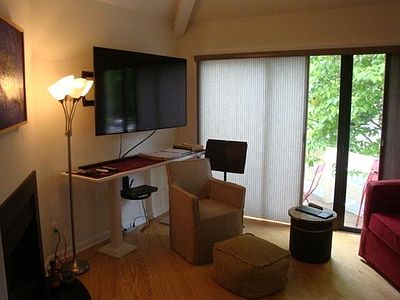 1 bedroom, 1 bath condo in Charlottesville, VA with pine flooring, lots of light, fully furnished including equipped kitchen
