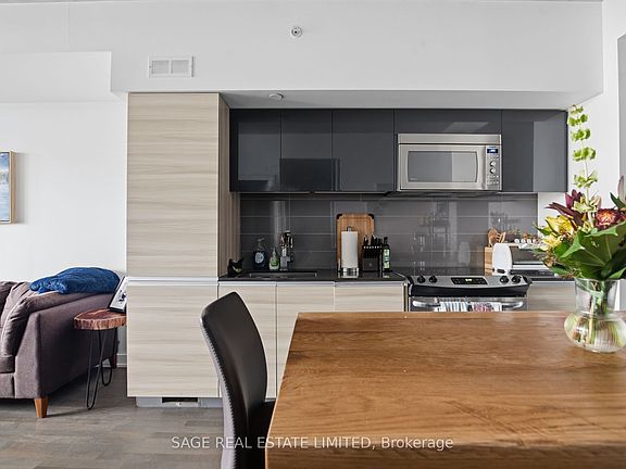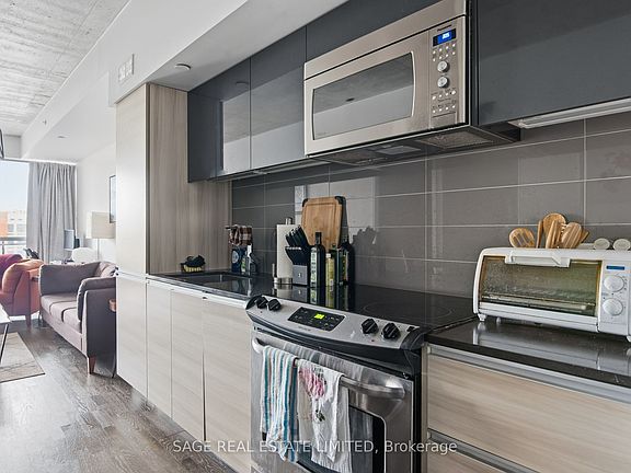 Loft style living in the heart of Leslieville. This one bedroom plus den suite at The Taylor Lofts offers just over 600 square feet of well planned space with 9 foot exposed concrete ceilings and large windows that fill the home with natural light.The kitchen features integrated appliances, quartz counters and simple, modern finishes that feel both warm and practical. The den is a true flexible space that can easily function as a home office or reading nook while keeping the main living area open and calm. The bedroom is comfortable and private, and the bathroom is clean and contemporary. In-suite laundry is included.Comes with parking and a locker which goes a long way in a boutique building like this.What makes this home work so well is the balance of design and everyday usability. The layout gives you room to live, work and relax without feeling crowded. The building itself is small, quiet and well cared for. And the location places you right into the best parts of Leslieville.Step outside and you are surrounded by independent cafes, neighbourhood restaurants, parks and transit. It is walkable, bikeable, and connected when you need it to be.A thoughtful home for someone who values good design and wants to feel part of a real community in the city.