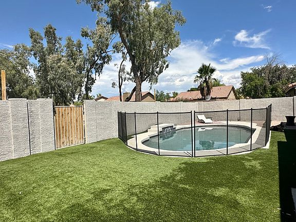 Welcome to your dream home in Gilbert, AZ! Did someone say fenced yard with a pool that backs onto a park biking distance to downtown Gilbert, Freestone Park AND a 5 min drive to highway access on 60?! This spacious and updated 4 bed, 2 bath single-family unit offers vaulted ceilings, modern upgrades, a fenced-in pool to keep you cool and the kids safe, a 2-car garage with an electric car 220 volt outlet. Inside, you'll find amenities such as brand new updated bathrooms with soaking tubs, dishwasher and washer/dryer. The master bedroom boasts additional sliding doors for you to step out onto the yard. Out front, you'll find a carefully designed desert landscape with low maintenance plants. And out back, you'll enter your oasis with a covered deck, fenced in pool, and ample yard space for kids and pets. Owner covers: Front yard maintenance and pool servicing Tenant covers: Electric, internet, water/trash Must fill out application with zillow credit and background check