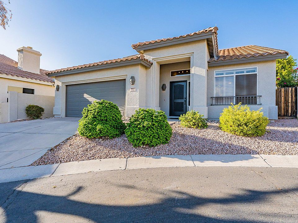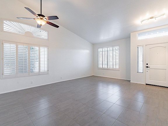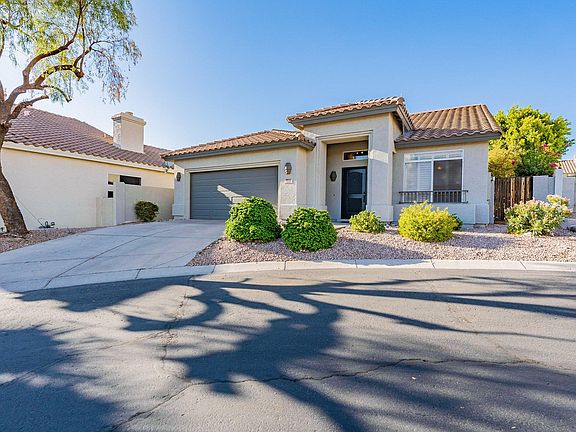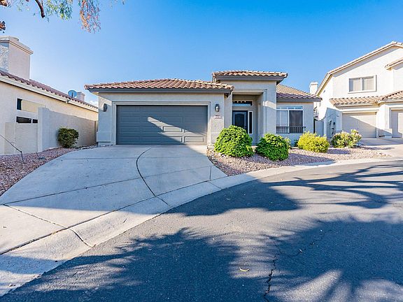 A desert oasis! New modern tile flooring installed in the main living areas and hallways since last photographed, as well as upgraded model ceiling fans. Energy efficient air conditioning unit. High vaulted ceilings & cozy wood pergola perfect for entertaining. The home is in a quiet neighborhood in a cul-de-sac near the Pointe Tapatio Cliffs golf course. 2 car garage with built-in storage. Large primary room with ensuite bathroom, & walk-in closet. Separate laundry room, washer/dryer included. Tenant is responsible for utilities.