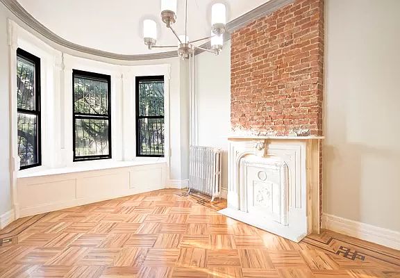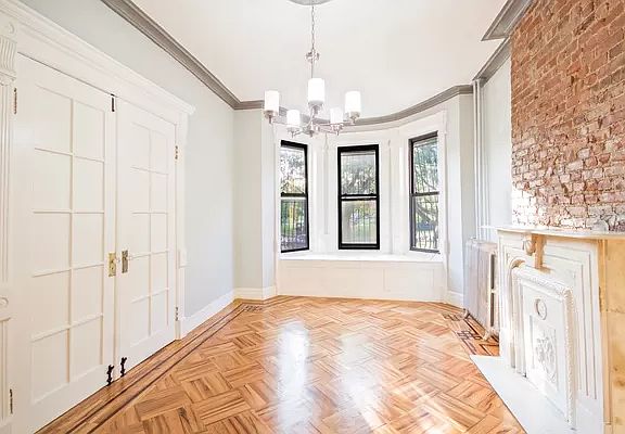 NO FEE_RESTORED WITH A TOUCH OF MODERNIZATION_1.5 BED PARLOR LEVEL FLOOR-THRU IN BUSHWICK TOWNHOUSE Immaculate townhouse across the street from Irving Square Park is offering this beautifully restored parlor level 1.5 bedroom in Bushwick. Dazzling and Historic Rental Townhome in Bushwick! Picturesquely located across the street from Irving Square Park, this spacious 1.5BR/BR, parlor-level home emanates sophistication and elegance with an attractive brick exterior and stately double front doors. Step inside the beautifully restored and renovated interior to find an organically flowing floorplan, tons of shimmering natural light, original hardwood flooring throughout, high ceilings, exposed brick, decorative fireplace with marble mantle, and an expansive living room with bay windows boasting serene views of the park. Separated by delightful French doors with transom windows, the completely remodeled kitchen features stainless-steel appliances, dishwasher, smooth granite countertops, ample cabinetry, French door refrigerator, 5-burner gas range, and a gleaming white subway tile backsplash. Sleep easy and recharge in your abundantly sized master bedroom, which includes two built-in closets and plenty of room for a king-size bed. For those needing flex space options, the bonus room serves as an excellent nursery, telecommuting office, walk-in closet, guest space, meditation room, art studio, or home gym. Experience the tranquility of a chic spa every day in the renovated full bathroom featuring custom Carrera basketweave marble tile, rain shower/tub combo, and a dove gray storage vanity with an exquisite Carrera marble countertop. The building is proudly pet-friendly, but pets are only permitted on a case-by-case basis. Other Highlights: No brokers fees Onsite laundry Heat and hot water included Guarantors accepted 2 blocks from Halsey L 10 min walk to Halsey J trains Close to shopping, restaurants, and much more!