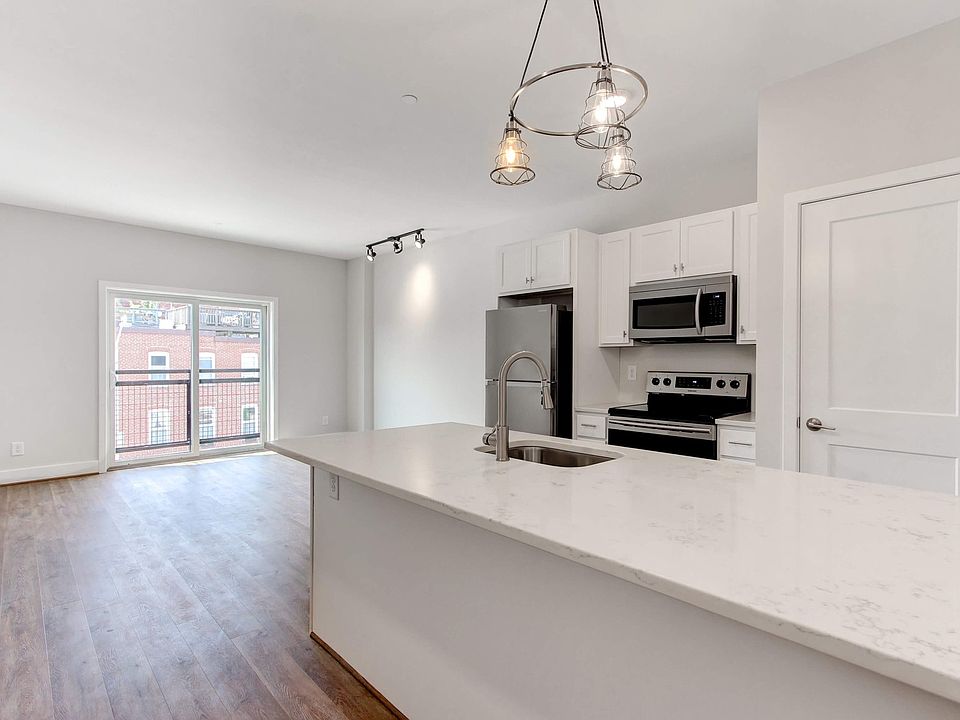 Newly constructed luxury building in the heart of Historic Federal Hill! Spacious 1 bedroom unit boasts a light-filled open floorplan featuring wood flooring throughout! Modern kitchens come well-equipped with stainless steel appliances, Quartz countertops, island breakfast bar, and generous storage thanks to high-end soft close cabinetry. Relaxing full bath includes slate ceramic tile, marble top vanity, and sleek fully tiled shower! Washer/dryer included in unit for added efficiency! Conveniently situated only minutes from dozens of local restaurants with easy access to I-95 and I-395. *photos and floorplans may vary*