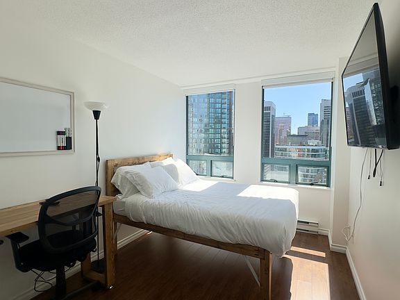 Rent a private room in a high-end 2-bedroom condo at 1238 Melville St, located in Vancouver's prestigious Coal Harbour. Perfect for a quiet, clean professional looking for luxury living with full access to premium building amenities.