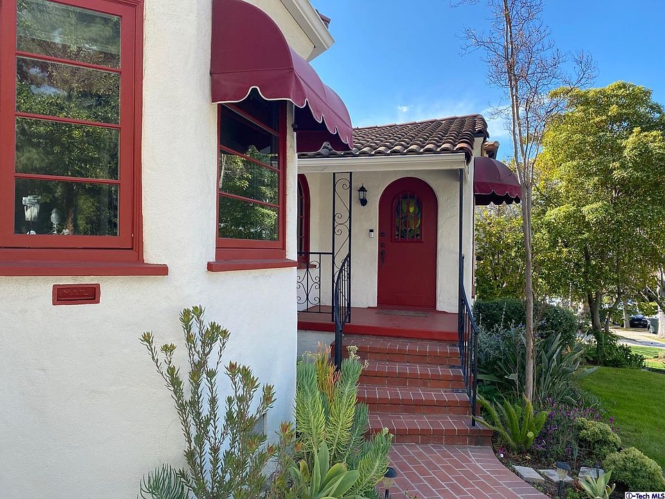This charming Spanish style home is located in the soughtafter area of Rossmoyne in Glendale. As you step on the gorgeous porch, you will walk through a beautiful door into a roomy living room with a well appoimnted fire place and a large window overlooking the street, gleaming hardwood floors thorughout, a separage dining room, a charming breakfast nook and an updated kitchen with hi-end stainless steel appliances (Wolf cooktop & oven, Miele dishwasher and a refrigerator) that leads to a pantry and the laundry area with plenty of cabinet space, and a side-by-side Washer & Dryer. There are 3 large size bedrooms and two gorgeous bathrooms with original tile. The masterbedroom leads to a cozy sun room that can be used as an office or playroom. This light and airy house has an abundance of storage closets. The majority of the windows are updated, dual pane windows. The backyard houses a two door detachced garage, and covered patio area, perfect for entertaining your family and friends. Welcome Home!