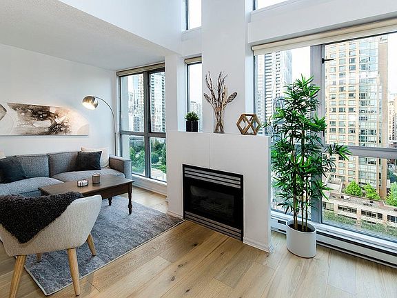 This beautifully decorated loft condo provides a relaxing, creative space to call home while working or visiting Vancouver. With an in-building gym, hot tub and gorgeous rooftop deck you can truly make the most of your time in Vancouver. This is a fantastic alternative to a hotel stay with a full kitchen, in-suite laundry, high speed Internet and a location close to downtown and the seawall. While living here you'll have access to one underground parking included in the rent, a second parking spot may be available at an additional rate. This West-facing home also has city views, high ceilings, hardwood floors, in-suite storage, granite/stone/quartz counters, marble/tile flooring, stainless steel appliances, easy seawall access, a fireplace, a flat-screen TV and a walk-in closet.