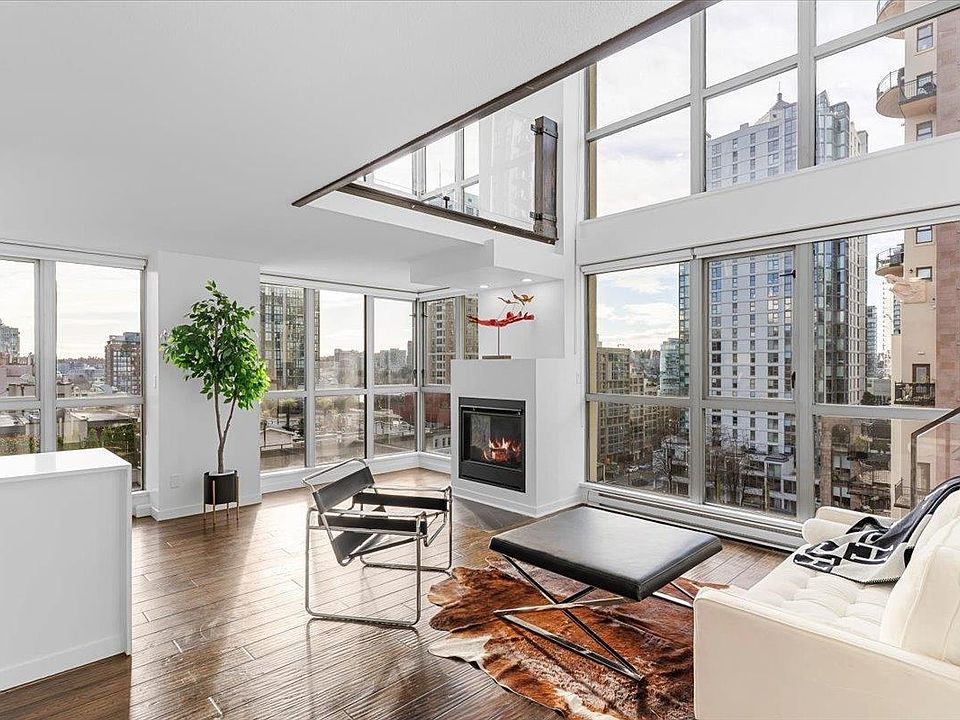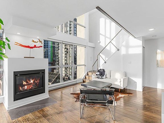 Designer two-level Yaletown loft at The Metropolis, featuring dramatic 16-foot floor-to-ceiling windows that flood the home with natural light. Enjoy city and water views from both levels. The home offers an updated kitchen and bathroom, with a well designed layout that includes a bedroom, den, and an additional loft area on the upper floor. Unbeatable location above Choices Market and just steps to Chez Nous Bakery, JJ Bean, the Canada Line, and Emery Barnes Park. A short walk brings you to Yaletown’s renowned restaurants and boutiques, the Farm to Table Market, the seawall, George Wainborn Park, and the Vancouver House retail district. Plenty of in-suite storage. Pets and rentals allowed. Call today to arrange your private viewing.