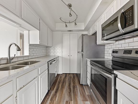 The main bedroom offers vaulted ceilings, a private balcony, and a fully updated ensuite bath with dual sinks, a large shower, utility room, and spacious walk-in closet. A loft-style second bedroom sits upstairs past the circular staircase and includes its own remodeled ensuite bath, skylights, and a must-see oversized closet. Recent improvements include a new roof, updated flooring, new blackout window treatments to help save on electricity bills, and a freshly painted deck. Two assigned parking spaces are included for added convenience. The split-bedroom layout provides exceptional privacy, with each bedroom offering its own full bath and balcony access ideal for morning coffee or quiet evenings outdoors. All of this is just steps from The Harbor in Rockwall, featuring top dining, shopping, and entertainment options like Gloria’s, Sideways BBQ, and Giovanni. With immediate access to I-30, commuting to Dallas and surrounding areas is effortless. Whether you're looking for a primary residence, a low-maintenance lock-and-leave lifestyle, or an investment opportunity, this condo checks every box. Experience lakefront living with unmatched urban convenience live where others vacation.