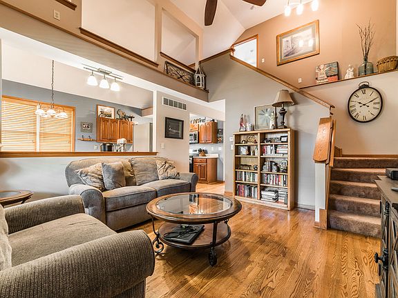 Prepare to be impressed! This 1/2 duplex has a wonderfully unique floorplan featuring 1,512 sq ft, PLUS a partially finished basement, large deck area with privacy fence, and oversized 2 car detached garage. The main floor features an inviting covered porch entry, family room with hardwood floor & volume ceiling open to the spacious eat-in kitchen complete with SS appliances and hardwood floor, 2 guest bedrooms, large laundry room with utility sink, and full bath. The 2nd level is your private master suite with full bath and huge 8x13 walk-in closet that leads to another 6x8 walk-in closet. There is also a 4x6 loft space that makes a great little nook for a desk! The basement is partially finished with a 4th bedroom, 2 escape windows, plenty of storage space, radon mitigation unit & sump pump. Updates in recent years include appliances, window treatments, some flooring, fence, and ceiling fan in family room. Easy access to Peace Road, Route 38, and I88 for your commuting needs. Take the first step to home ownership today by scheduling a private tour of your next Home, Sweet Home!
