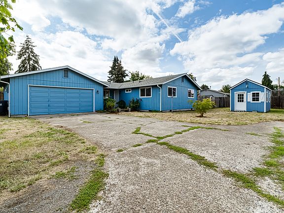 Discover this charming 3-bedroom, 1-bathroom home, set back on a long private drive in a quiet neighborhood! Situated on a .26-acre lot, this 1,052 sq ft house was completely remodeled in 2018 and recently updated with new interior paint and carpet. It features modern amenities such as laminate floors, vinyl double-pane windows, ductless heating and air conditioning, and a spacious two-car garage with RV parking. The fully fenced yard offers an abundance of space ready to be transformed into beautiful gardens, a serene outdoor retreat, or a play area for family activities. The freshly stained deck and versatile 10'x16' studio/shop with electrical provide additional room for living, hobbies, or a home office. With proximity to schools, Echo Hollow Pool, Petersen Park, Petersen Barn Community Center, shopping, and restaurants, this home combines comfort and potential in a peaceful setting.