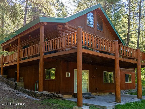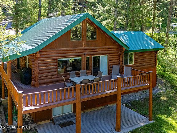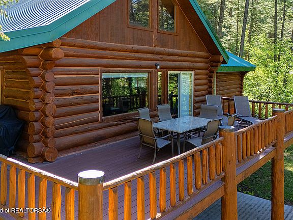 Escape to your own hand-hewn log retreat nestled in the woods of Star Valley Ranch, WY. This captivating 4-bedroom, 4-bathroom cabin beckons with its tranquil setting right across the road from the Bridger/Teton National Forest. Step inside to discover an inviting open floor plan on the main level, where the warmth of the wood and the natural light create a cozy ambiance. The lower level boasts a wet bar in the family room, perfect for entertaining, and an open loft with built in beds provides additional space for relaxation or work. As you step outside onto the large deck, you'll be greeted by stunning views to the west, overlooking the picturesque landscape towards the Cedar Creek Golf Course. Whether you're seeking a serene weekend getaway or a year-round haven, this log home offers