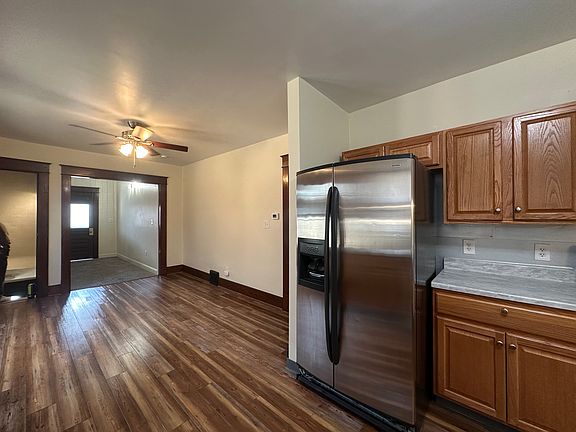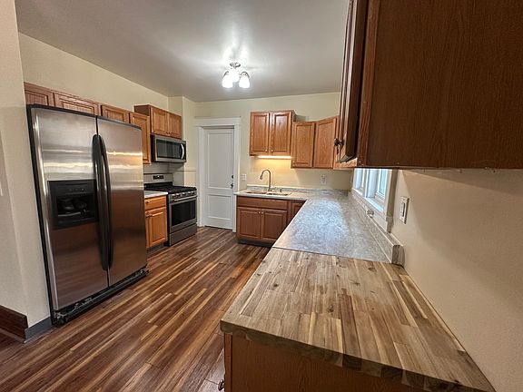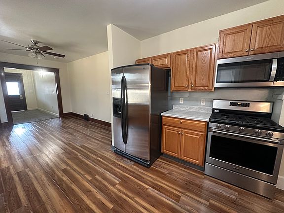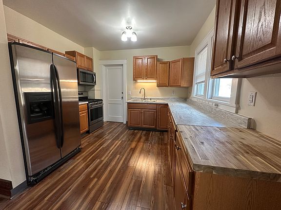 Move in ready in a nice neighborhood centrally located with easy access to stores gas stations and city parks. The apartment is a Freshly painted second and third floor unit with front and rear enclosed porches. It comes with additional Attic storage a half basement with a washer and dryer. In the shared backyard there is a hose connection and it is a fenced in yard. The apartment also has Natural lighting, modernly, renovated bathroom with amenities such as a quite run bathroom light- exhaust fan and decorated with original oak trim. There is an Oak fireplace mantel in master bedroom and Both bedrooms have new carpets . In the newly renovated kitchen it features a stainless refrigerator with ice and water dispenser, Gas stove, double sink, above stove microwave newer cabinets and countertops . Also included in this lovely apartment is an off street parking spot for 1 car. The apartment is secured with Newer steel doors with keyed alike locksets at front lower, rear lower, upper front, and upper rear. Vinal blinds included on most windows but no curtains provided . Don't miss your opportunity on this stylish apartment in a friendly neighborhood.