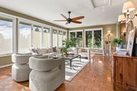 Mature treesRelaxing hot tubLarge deckFormal dining roomThree generous bedroomsCozy second family roomExpansive windows