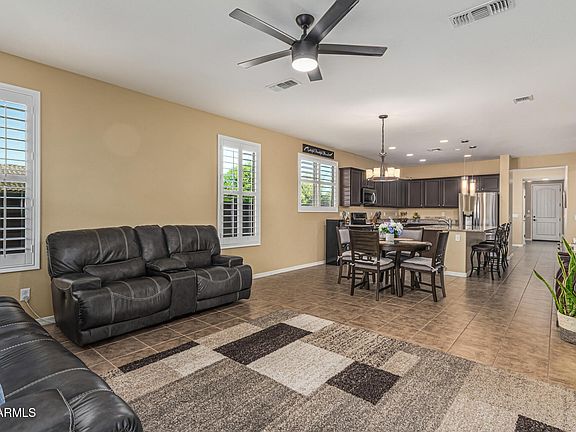 Exceptional Home in Prestigious Marley Park! Perfectly situated on a premier corner lot directly across from a lush community park. This exquisite 4-bedroom + den, 3-bath residence showcases timeless elegance and refined design. Step inside to discover an open, light-filled floor plan where the gourmet kitchen seamlessly overlooks the expansive great room--ideal for modern living and effortless entertaining. The chef's kitchen boasts sleek stainless steel appliances, striking granite countertops, a spacious breakfast bar and a generous walk-in pantry. Thoughtfully designed for comfort and privacy, the home features a sophisticated split floor plan, including a secluded primary suite, two well-appointed guest rooms and a luxurious guest suite. Throughout the home, custom plantation shutter and designer finishes add to its elevated appeal. The professionally landscaped backyard is equally impressive, highlighted by extended pavers, decorative gravel, and low-maintenance artificial turf. With easy freeway access and all of the amazing community amenities as well as, you won't want to miss this home!