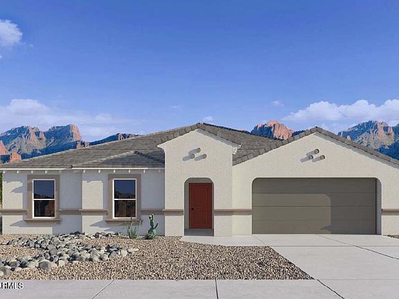 BRAND NEW | Estimated Completion January/February 2026 | Pool Sized Lot w/ a Double Gate and No Back Neighbor | This floorplan will make your jaw hit the floor! From the plethora of bedrooms and bathrooms to the gargantuan living space, this home has a place for everyone. Interior finishes include granite kitchen & bathroom counter tops, white cabinets, and tile flooring throughout, except the bedrooms. Smart home technology is included along with a 14 seer HVAC and energy saving features. Also, this home includes stainless steel appliances, 220v pre-wire in the garage, 2'' window blinds, garage door opener, rain gutters, plus front yard desert landscape. Come see this home in the desert's most sought after hidden gem, Magma Ranch Vistas!