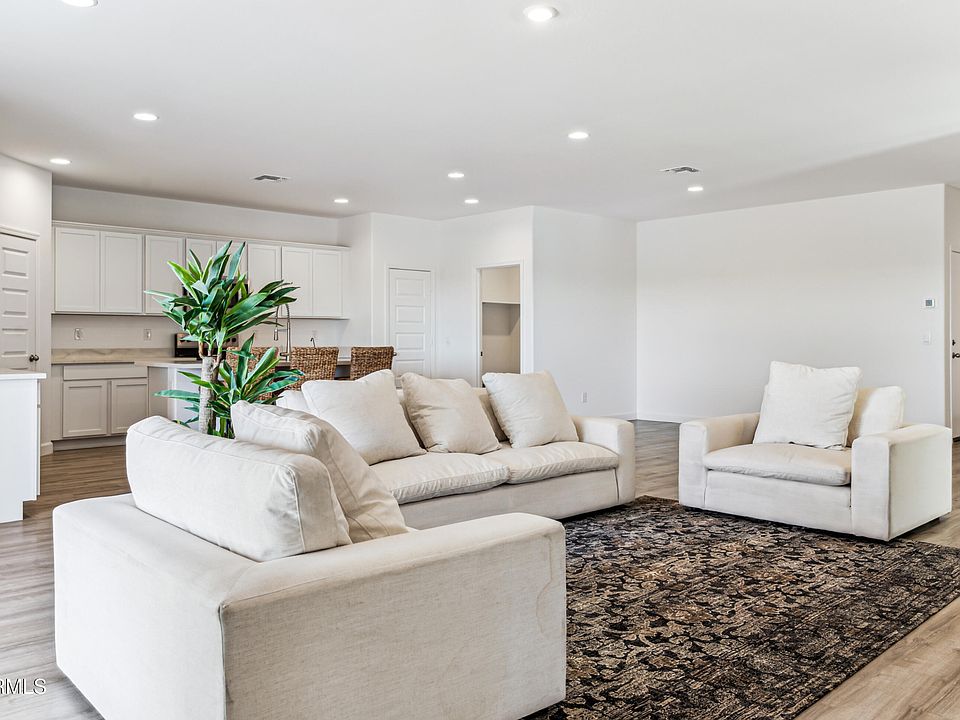 Pool sized lotGargantuan living spaceGarage door openerFront yard desert landscapeDouble gateWhite cabinetsSmart home technology