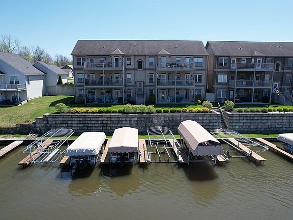 It's Lake Time! With the luxury of maintenance free condo living you can spend all of your time enjoying the lake. The pool, lawn, landscape & waterfront are all taken care of for you. There are beautiful lake views from your composite material balcony, the living area, and the master bed/bath. The vaulted ceilings give a light and airy feel to the living area, and features include granite countertops and a ceramic tile shower. No need to shop for furniture as the seller will leave all, and with the elevator right outside your door there are no worries about steps. There is a boat ramp to launch your boat, a boat slip with a wake boat ready electric lift to store your watercraft, a 1-car garage with overhead storage, and an additional storage area for your water toys. A short walk to food, fun, the Madam Carroll Riverboat, and IN Beach Amusement Park is just minutes away!