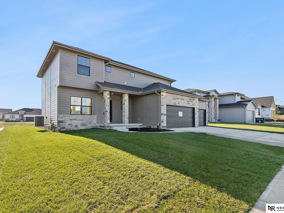 The Home Company "Ellison" on an flat lot with 4 bedrooms, 3 baths, 3.5 car garage. 2,446 square feet of open efficient space. Large windows in great room. Large drop zone off garage. Open kitchen with hidden pantry, stainless appliances, mantle & stonefireplace, primary bath with tiled shower. A back staircase to the second floor is what gives the main living space a wide open concept. New 2nd floor layout creates open feel and additional closet space. Dual vanities in both 2nd floor baths. Passive radon and sprinkler included. All measurements approximate. Home is complete