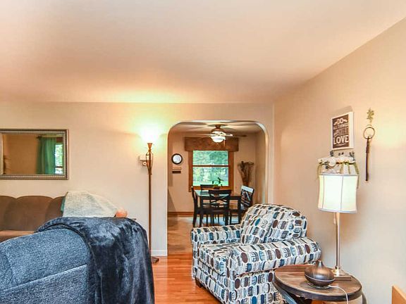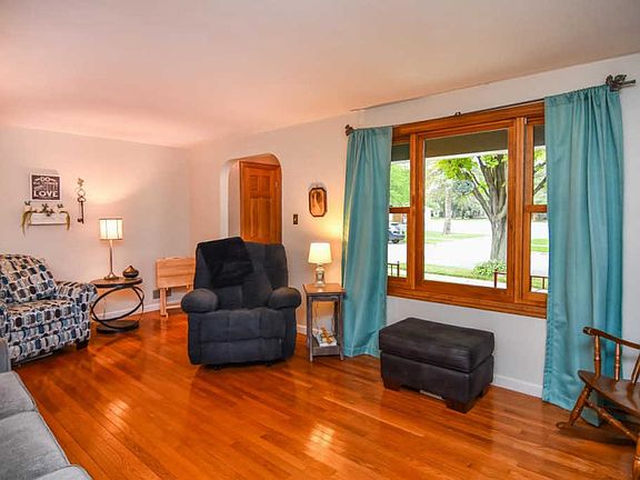 Great Curb appeal! Maint free well built stone ranch w/new roof & gutter guards on NW side has many updates incl windows, beautiful hw flrs in spacious LR, leading to completely remodeled kitchen w/maple cabinets, light fixtures & tile flr. Split design bedrms offer hw & parquet floors. Plenty of storage throughout, including w/i closet in master. Other bedrooms have added shelves in closets. 6 panel doors & ext doors replaced, trim & molding as well as freshly painted. 3 season room leads to landscp yard w/4 garage stalls, inc shop. Basemnt w/painted flrs, drop ceiling, fireplace & full bath