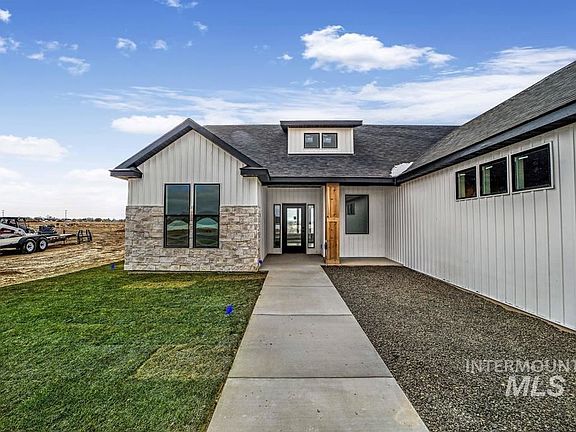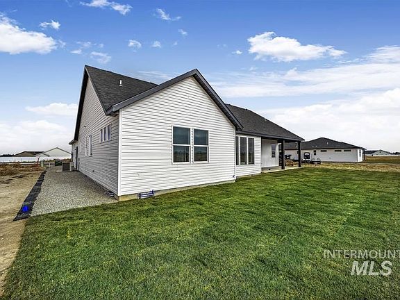 Welcoming covered front porch leads to a sprawling one level home with extras built-in throughout. Off the entry you'll find an office/den/play room with doors. Open concept great room with lots of natural light. Kitchen with two tone cabinets, granite counters & modern touches throughout. Master suite is incredible with a grand walk-in tile shower with glass surround, dual vanities with tons of cabinet space, separate soaker tub & large walk in closet that connects to the laundry room with tons of cabinet space. Off the garage you'll enjoy the large locker/mud room area. Split bedroom plan with 2 nice sized guest rooms & full guest bath. Attached garage is oversized with plenty of room for shelving on the side & middle, plus it's nicely finished inside. Enjoy the beautiful sunsets from your covered patio. Home was built with LVL studs which is a huge bonus. Sprinkler system and sod already installed! Home is complete and move in ready!