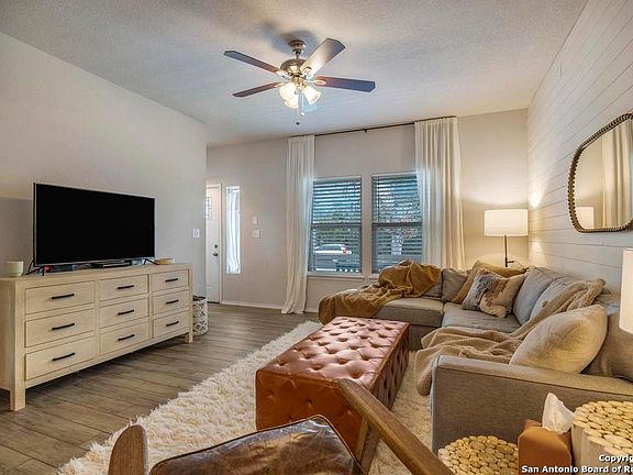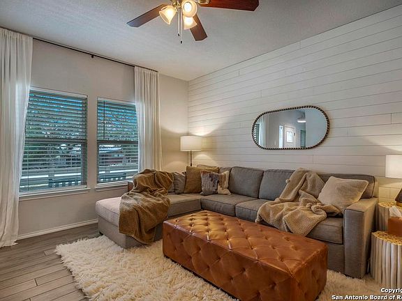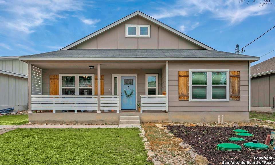 Nestled in the serene landscape of Spring Branch, Texas, amidst the rolling hills of the Texas Hill Country, lies a charming abode just a stone's throw away from the tranquil waters of Canyon Lake, boasting the convenience of being only a mile away from boat ramp #11. This picturesque home exudes a blend of modern elegance and cozy comfort, adorned with designer touches that add a unique flair to its inviting ambiance. As you step inside, you're greeted by a spacious living area that beckons for gatherings and merry conversations. The seamless flow between the dining area and kitchen creates an inviting space where guests can mingle and enjoy each other's company. Designer fixtures adorn every corner, adding a touch of sophistication to the surroundings. The heart of the home, the kitchen, is adorned with granite countertops that not only enhance its aesthetic appeal but also offer practicality and durability. With ample space at the kitchen island for culinary enthusiasts and entertainers alike. Towards the rear of the floor plan lies the primary bedroom, strategically positioned for privacy and tranquility. It boasts a full bath adorned with luxurious features, including an oversized walk-in shower that beckons for relaxation after a long day. A spacious walk-in closet adds functionality and convenience to this private retreat. The secondary bedrooms are equally charming, each offering ample closet space and upgraded fixtures that elevate their appeal. Wood laminate flooring graces the entirety of the home, lending warmth and character while ensuring easy maintenance. Outside, a sprawling backyard awaits, providing the perfect backdrop for outdoor gatherings, recreational activities, or simply basking in the beauty of nature. Or enjoy the long front porch that is more than just an architectural feature; it becomes a sanctuary - a place where you can escape the hustle and bustle of daily life, reconnect with nature, and find solace in the simple pleasures of outdoor living. With its idyllic location, thoughtful design, and array of upscale features, this Spring Branch sanctuary embodies the essence of comfortable living in the Texas Hill Country. Whether you're seeking a serene retreat or a space to entertain loved ones, this home offers the perfect blend of luxury and charm.