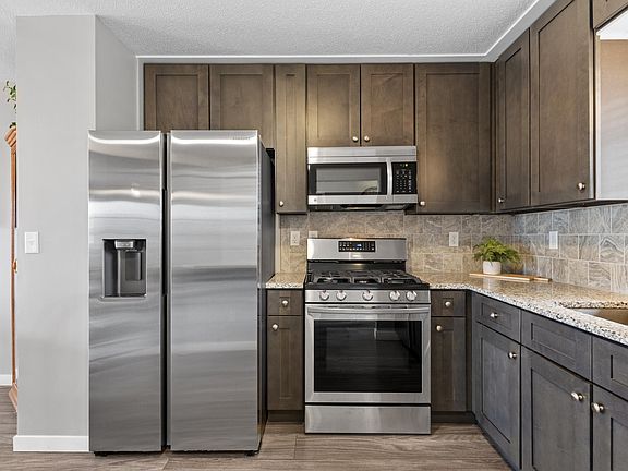 Looking for convenient townhome living at its finest? Look no more! This gorgeous, well-maintained, end-unit in the heart of Fridley offers everything from boasted updates to LOCATION! Walking up you're greeted with gorgeous pines making for a private feel and a charming front-porch. Upon entering is open-concept living on the main-level with beautiful luxury vinyl flooring, a fully updated kitchen with custom cabinets, granite countertops, ceramic tile backsplash, Samsung stainless steel appliances, a built-in breakfast bar, fresh paint, new trim, an updated 1/2 bath and dazzling fireplace! Right off the living room is your large 20x8 maintenance-free deck- perfect for your morning cup of coffee or evening cocktail! Upstairs you’ll find 2 spacious bedrooms- one of which has TWO walk-in closets, a full walkthrough bath with a custom large double-sink vanity and immaculate ceramic tile flooring/surround. 2nd bedroom offers more closet space and an abundance of natural lighting! Other updates include new light fixtures, blinds, carpet/paint throughout, a new water softener and a Samsung washer machine! Suitably located near highway 694, Moore Lake Park and ample shopping/dining just down the road on Central. Hillwind could be yours- book your showing TODAY!