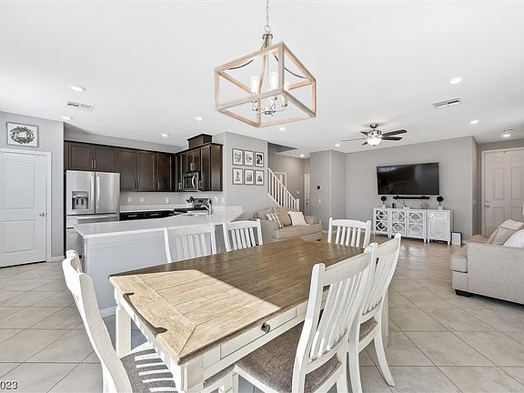 You can stop your search! THIS IS THE ONE! Gorgeous, upgraded and spotless 4 BED/2.5 BATH 2 STORY. This beauty oozes PRIDE OF OWNERSHIP and is MOVE IN READY! This open GREAT ROOM floorplan has tile throughout the downstairs living areas, kitchen, bathrooms. STUNNING KITCHEN with rich dark cabinetry, QUARTZ countertops, breakfast bar, STAINLESS STEEL appliances and PANTRY. Tranquil primary bedroom w/ ceiling fan and walk-in closet. Primary bathroom oasis includes QUARTZ DOUBLE VANITY, GARDEN TUB and WALK-IN SHOWER. Large secondary bedrooms. Two of the additional bedrooms offer WALK-IN closets for PLENTY of STORAGE. 2nd full bathroom upstairs with double vanity and tub/shower. Upstairs laundry room. Fully LANDSCAPED, LOW MAINTENANCE backyard w/ tons of GREEN ARTIFICIAL GRASS, and two paver patio areas. Other upgrades include WATER SOFTENER, REVERSE OSMOSIS, TANKLESS WATER HEATER. GATED community w/ PARK. Close to freeway, shopping, VA Hospital, and new Tule Springs Regional Park.